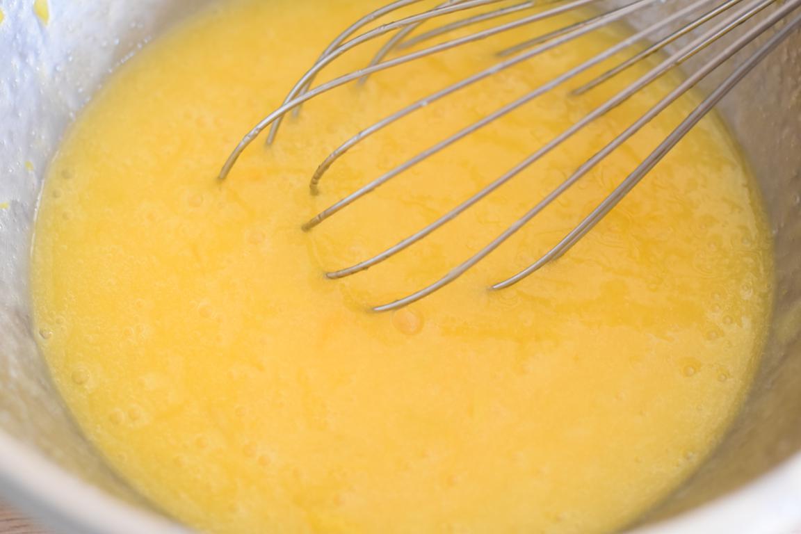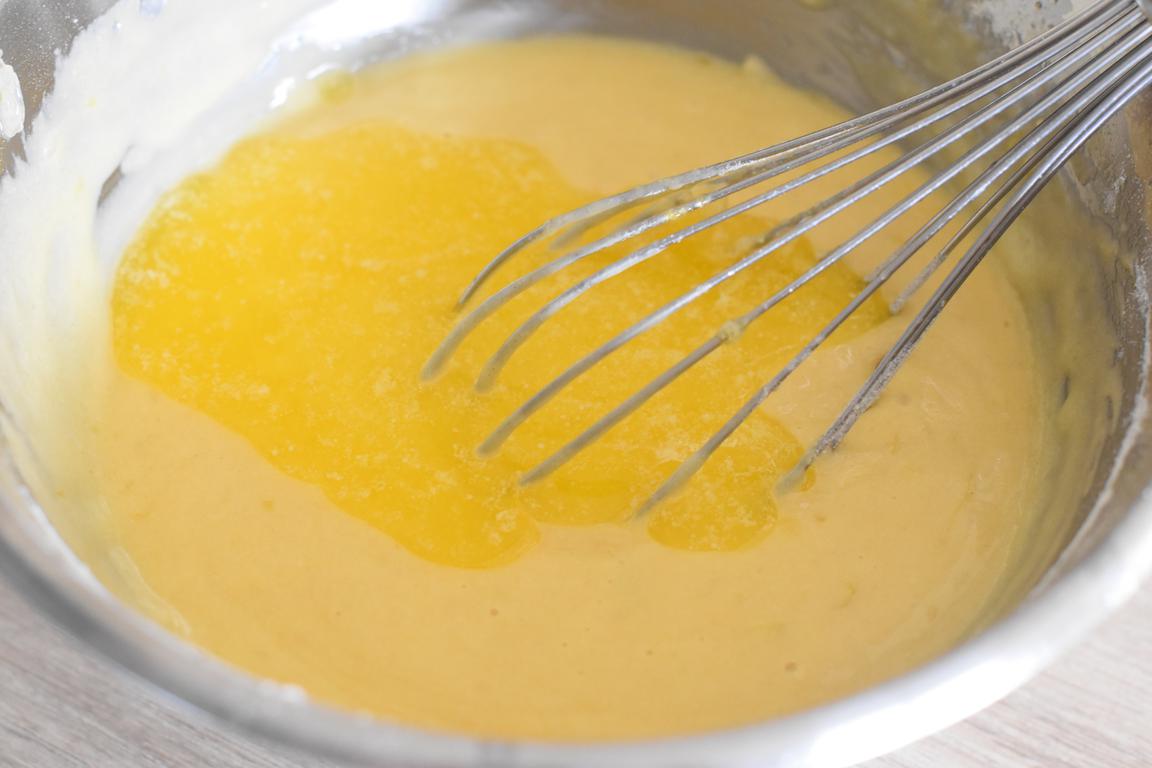 - Préchauffer le four à 160 degré. faites fondre le beurre puis laissez-le tiédir. Mélangez le sucre avec les zestes. Ajoutez les œufs puis le jus de citron.